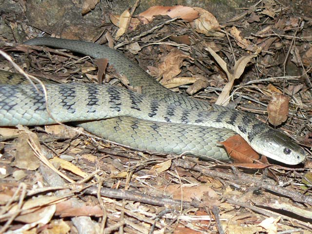 Brown to olive with narrow, irregular cross-bands or blotches of darker brown. Belly surfaces greenish-grey or olive-cream often with darker blotches. Midbody scales have a raised keel or carinated appearance. Coloration and scale structure has led to some confusion with the non venomous Keelback Snake (Tropidonophis mairii) which differs in having a loreal scale present and usually more defined keels on each scale. Midbody scales at 23 rows.