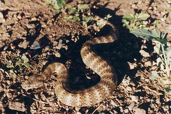 Short, thick body with distinct large triangular head. Narrow neck and abruptly short, thin tail, usually cream or black. Colour variable, generally shades of grey to reddish-brown with irregular cross-banding. Belly greyish-cream with dark flecks. Lips usually barred or striped. Scales may be roughish or weakly keeled. Midbody scales at 21 -23 rows.