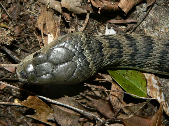 Brown to olive with narrow, irregular cross-bands or blotches of darker brown. Belly surfaces greenish-grey or olive-cream often with darker blotches. Midbody scales have a raised keel or carinated appearance. Coloration and scale structure has led to some confusion with the non venomous Keelback Snake (Tropidonophis mairii) which differs in having a loreal scale present and usually more defined keels on each scale. Midbody scales at 23 rows.