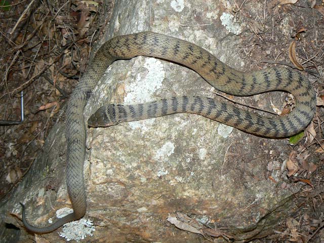 Commonly encountered at Mt Nebo, Mt Glorious and the western facing slopes of the D'Aguilar range. In 1999 a specimen from Rochedale was presented by a snake relocator where historical records are known. Periphery suburbs such as Upper Brookfield have also seen recent records.